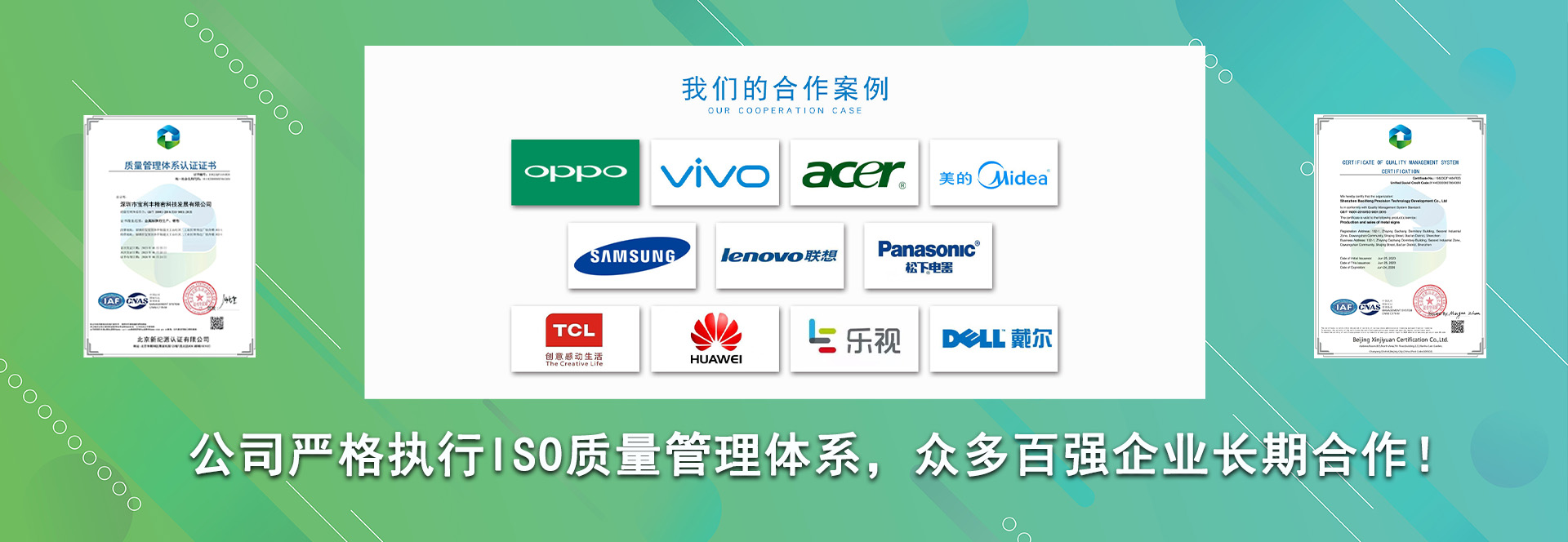本公司與一些知名的企業(yè)都有合作,如:富士康、西鳳酒、茅臺、五糧液、恒旭包裝、聯(lián)想、華為、志高、建力高爾夫、東驊電腦、長城電腦等,我們真誠希望與您合作、為您服務。